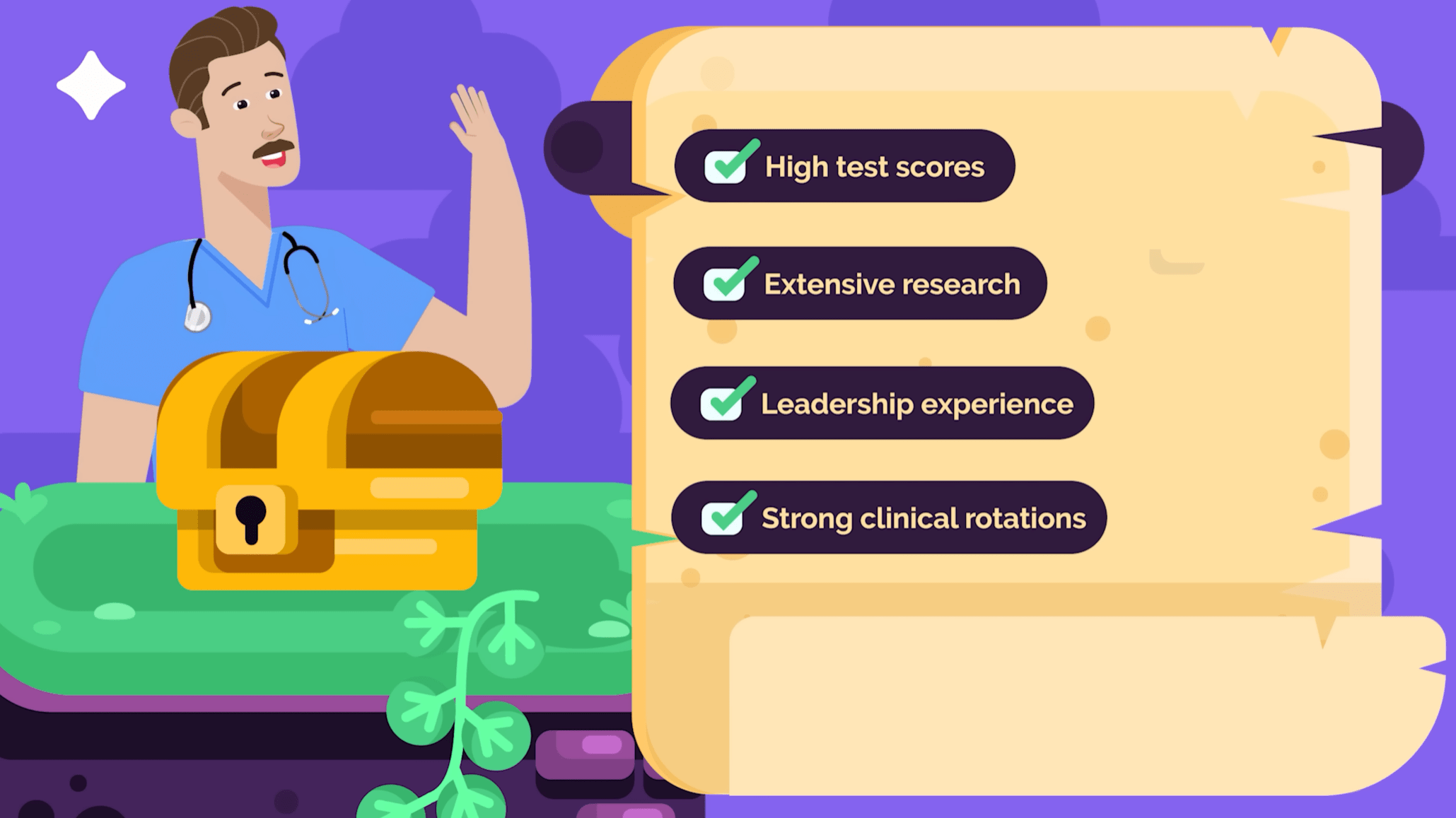 And finally, dermatology is one of the most competitive specialties, so you’ll need to be willing to put in the time and effort to become a top student. That translates to more than just high board scores, but also playing the research game, being a leader, and acing your clinical rotations.