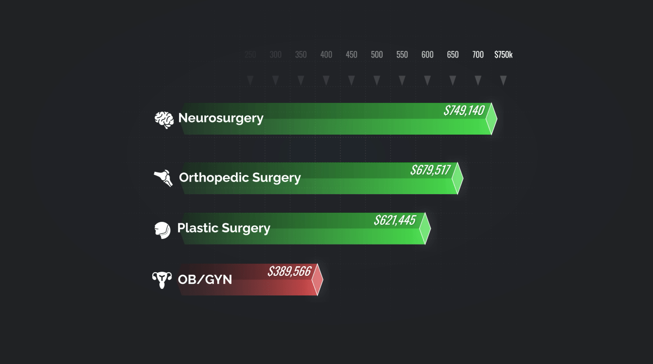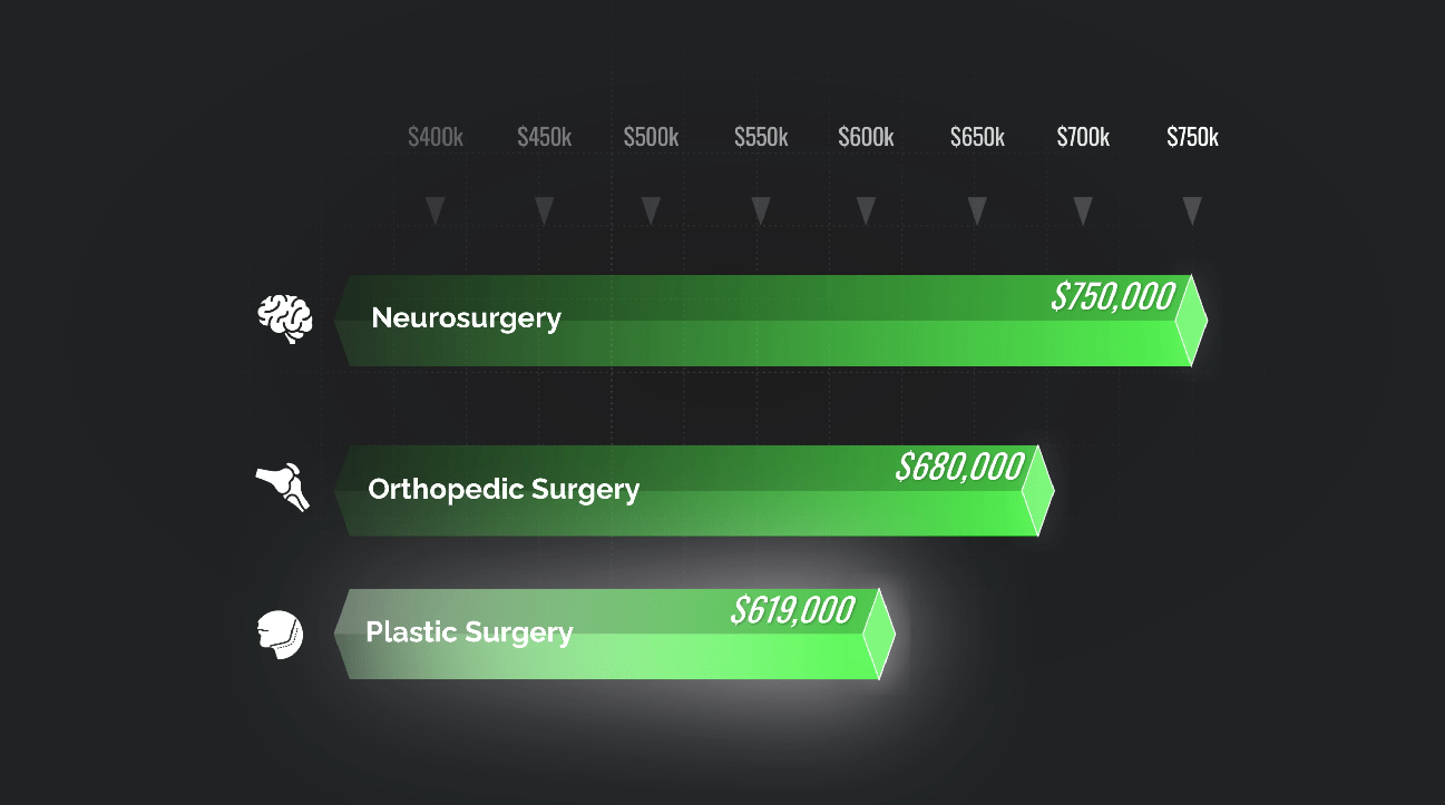 Orthopedics rounds out the 44% group. These surgeons treat musculoskeletal conditions and typically enjoy high compensation at over $650,000 annually.